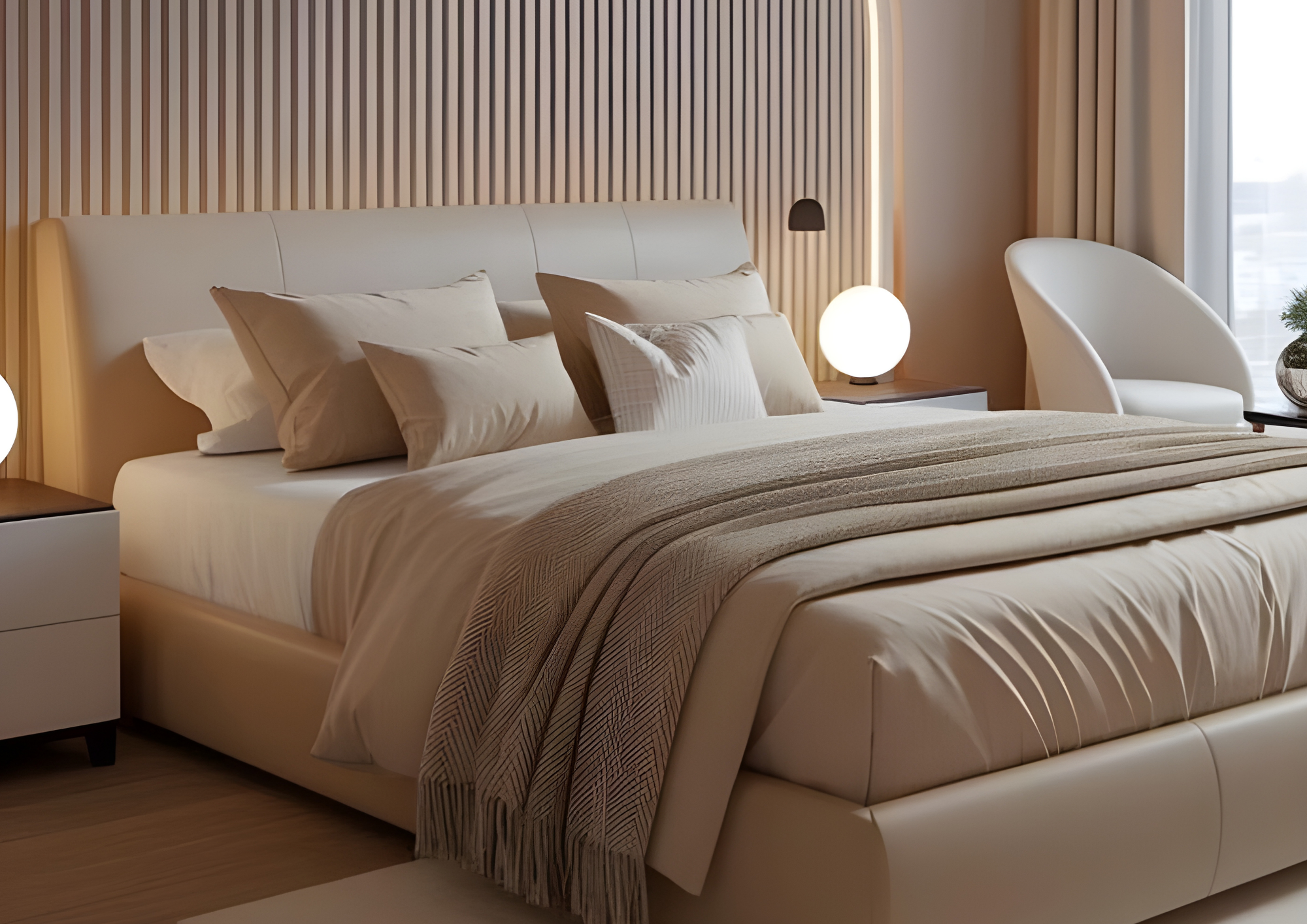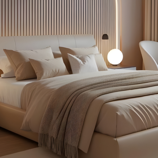 سرير حديث بتصميم عصري أنيق، مصنوع بجودة عالية ليجمع بين الراحة والمتانة.