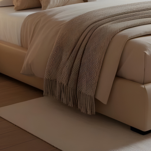 يأتي السرير مزودًا بأرجل متينة قوية التحمل مصممة لتحمل مختلف الأوزان وتوفير ثبات عالي أثناء الاستخدام اليومي. يمكن تفصيل السرير بجميع المقاسات ليناسب مختلف المساحات،